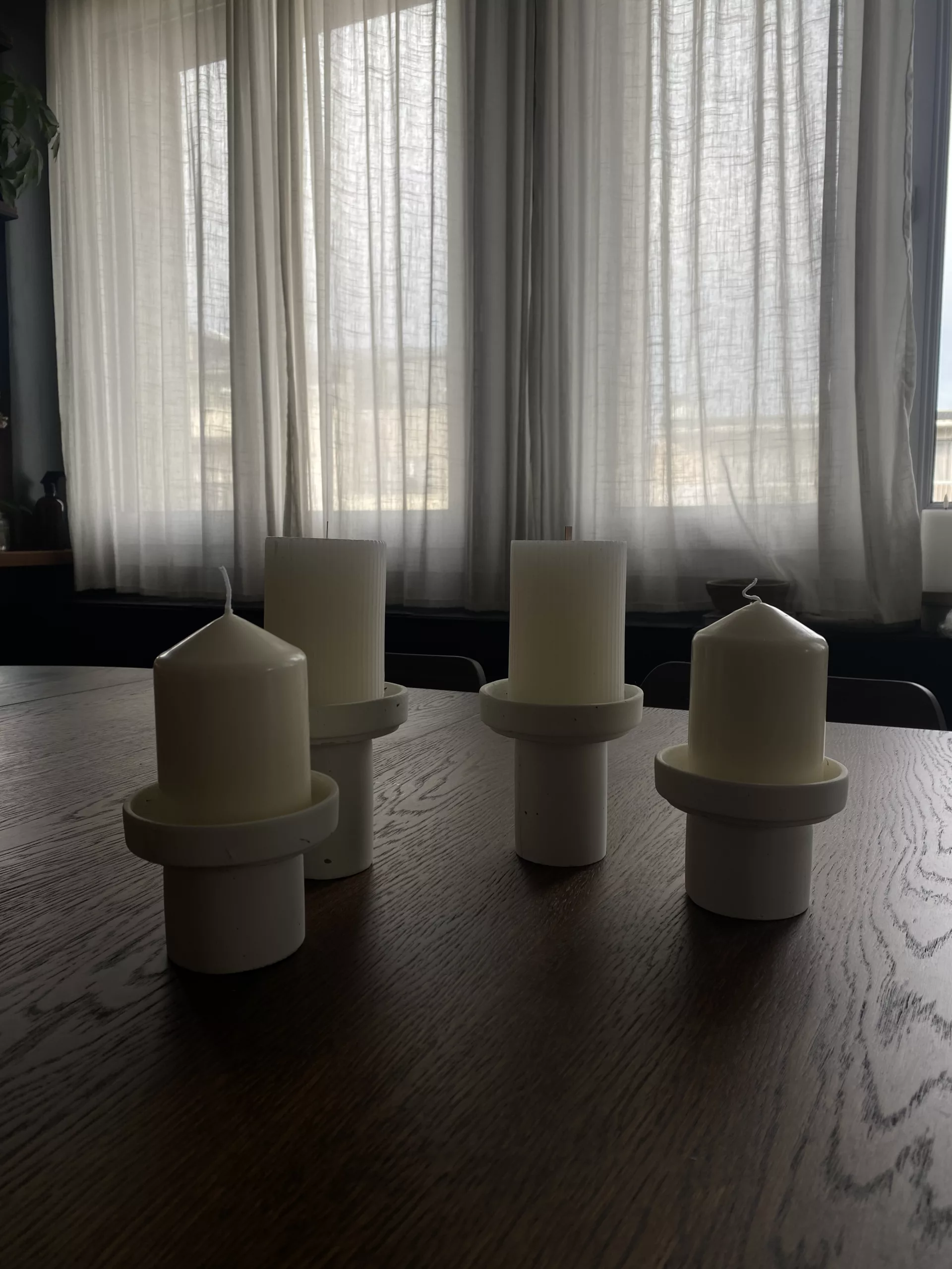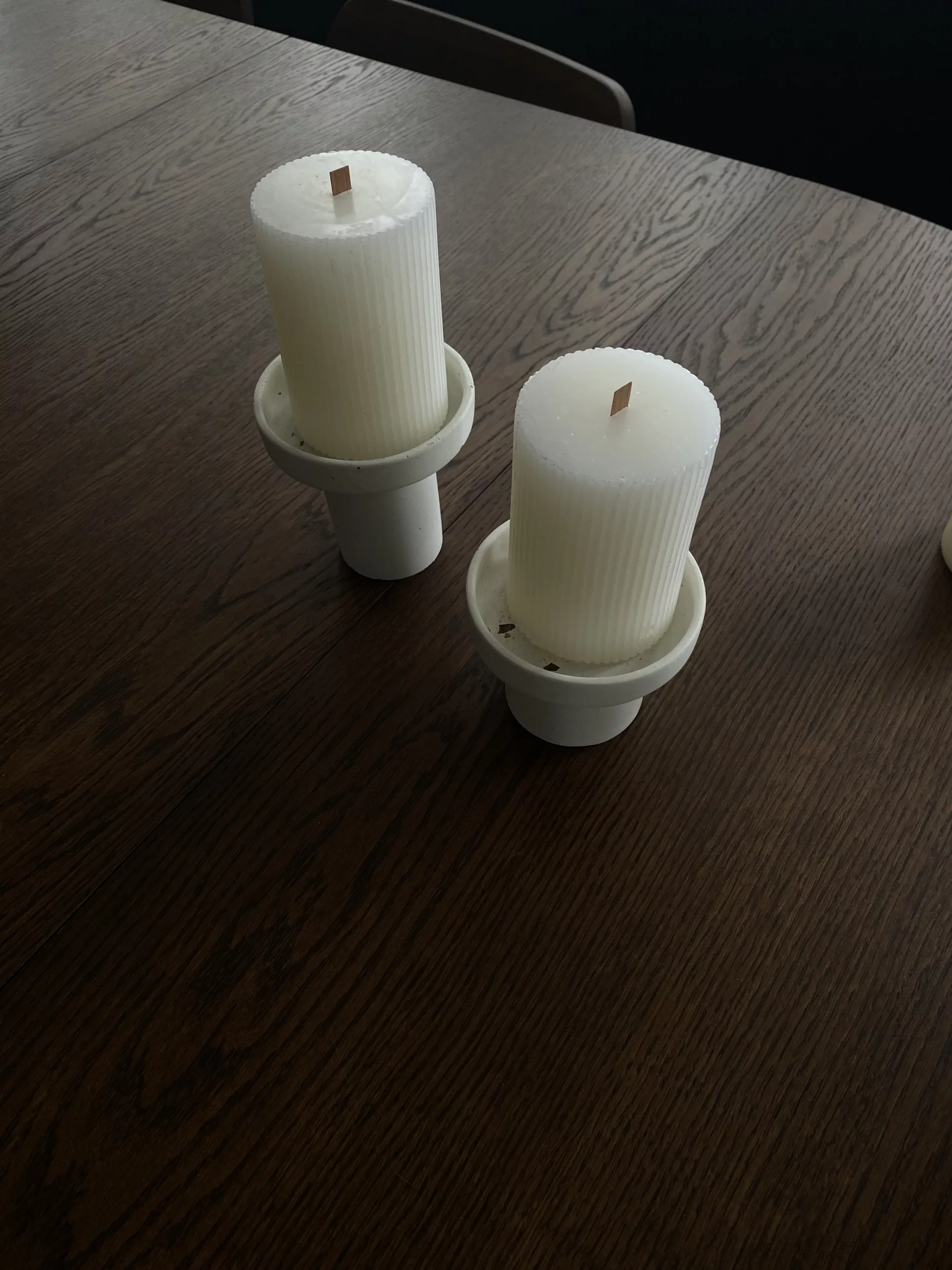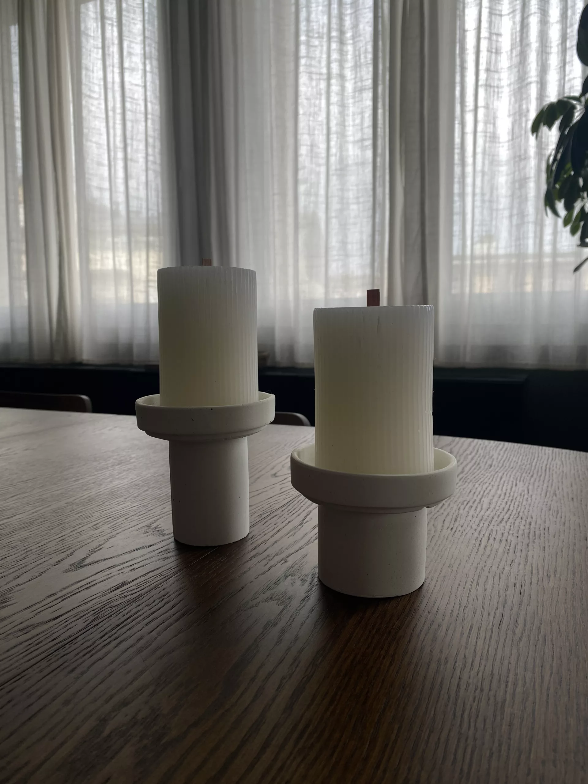Ces supports mettent en valeur la texture minérale du béton tout en offrant une présence visuelle sculpturale. Leur silhouette verticale élance la flamme et crée une ambiance chaleureuse, idéale pour une table de salon, une étagère ou une table de salle à manger.