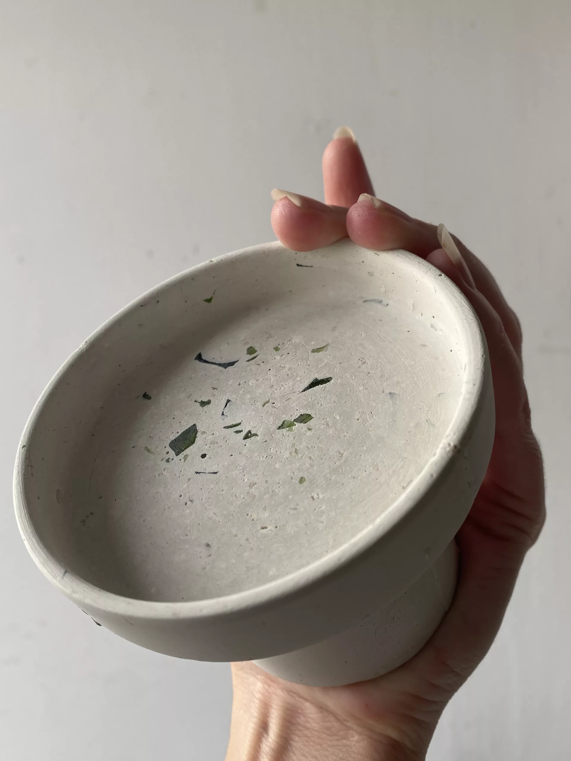 Chaque pièce est mélangée, coulée, poncée et scellée à la main avec un produit imperméabilisant à 90% issu d’ingrédients naturels. Nous utilisons du béton et réalisons nous-même le mélange des composants. Notre conception est de minimiser notre impact écologique en utilisant des matières premières recyclables.