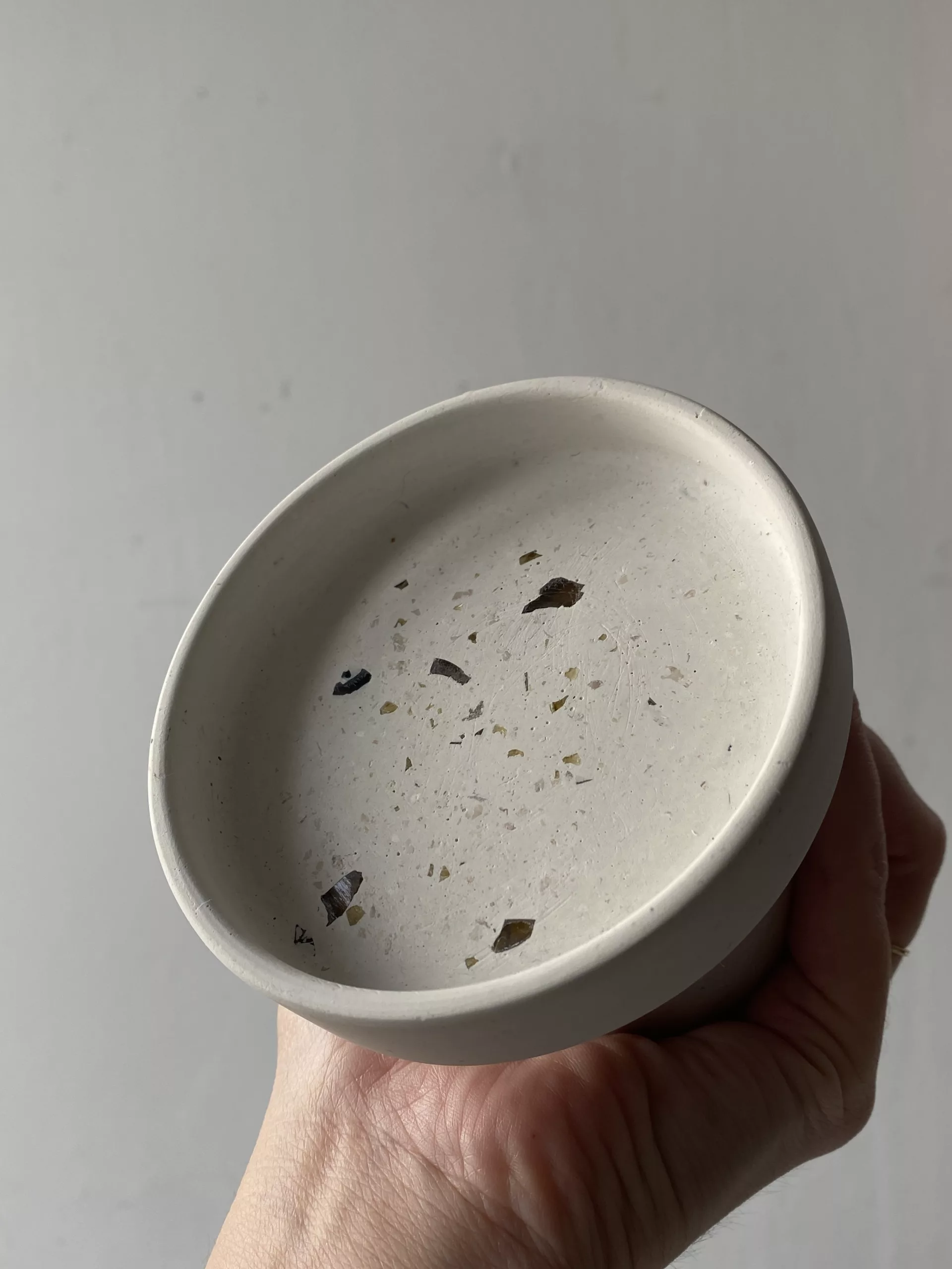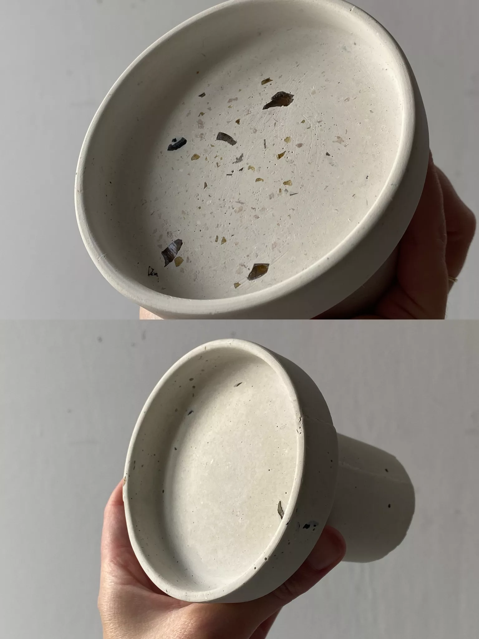 Chaque pièce est mélangée, coulée, poncée et scellée à la main avec un produit imperméabilisant à 90% issu d’ingrédients naturels. Nous utilisons du béton et réalisons nous-même le mélange des composants. Notre conception est de minimiser notre impact écologique en utilisant des matières premières recyclables.
