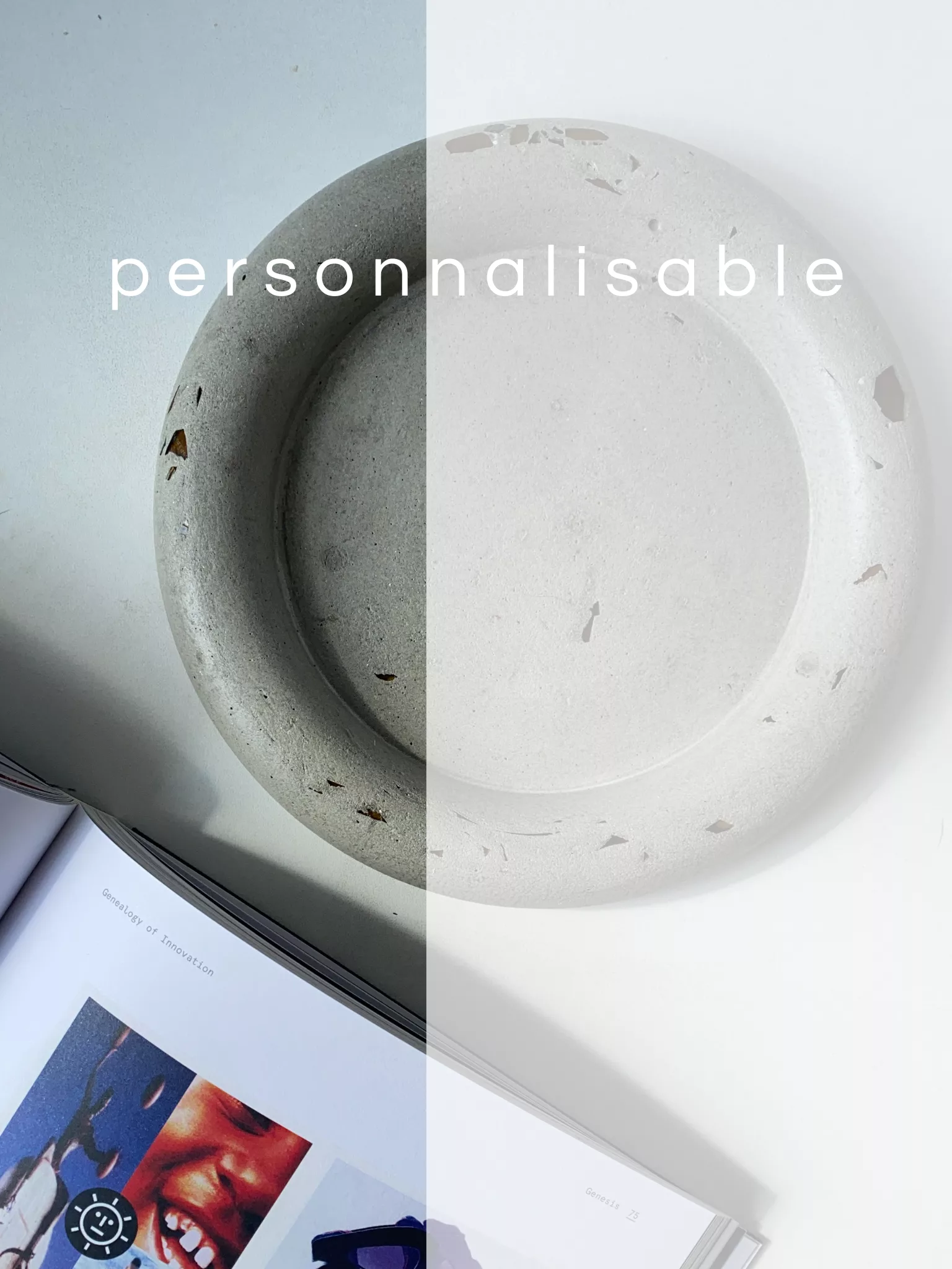 Travailler avec du béton signifie que chaque coulée est unique. Des caractéristiques telles que les bulles d’air, aspérités, rayures mineures ou des bosses sont inévitables en raison de la nature du béton. Ces caractéristiques ne sont pas considérées comme des défauts. Les couleurs des pièces peuvent être différentes des photos selon leur production et selon la luminosité.