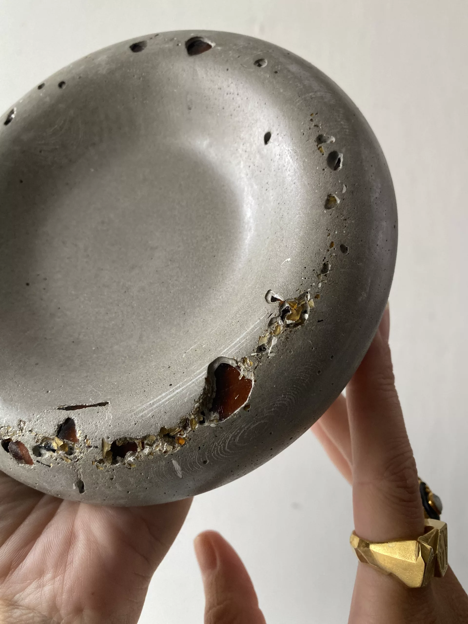 Chaque pièce est mélangée, coulée, poncée et scellée à la main avec un produit imperméabilisant à 90% issu d’ingrédients naturels. Nous utilisons du béton et réalisons nous-même le mélange des composants. Nous revalorisons notre béton et notre verre en l’intégrant dans nos nouvelles pièces.